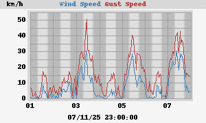 max: 39 km/h at 03/11/25 10:10:00 max gust: 51 km/h at 03/11/25 10:15:00